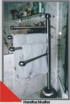 Handtuchhalter aus poliertem Edelstahlrohr mit Zierkugeln. |