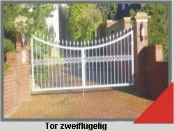 Toranlage mit elektrischen Antrieb, zweiflügelig in verzinkter Ausführung. |