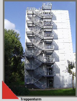 Achtgeschossige Außentreppe, Stahl verzinkt. Von uns konstruiert, gefertigt und montiert. |
