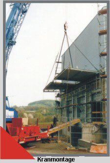 Montage eines Vordaches mit Kraneinsatz. |