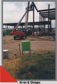 Montage einer Stahlkonstruktion aus genormten Walzprofilen. |
