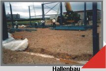 Montage einer Stahlhalle mit Kran und Steiger. |